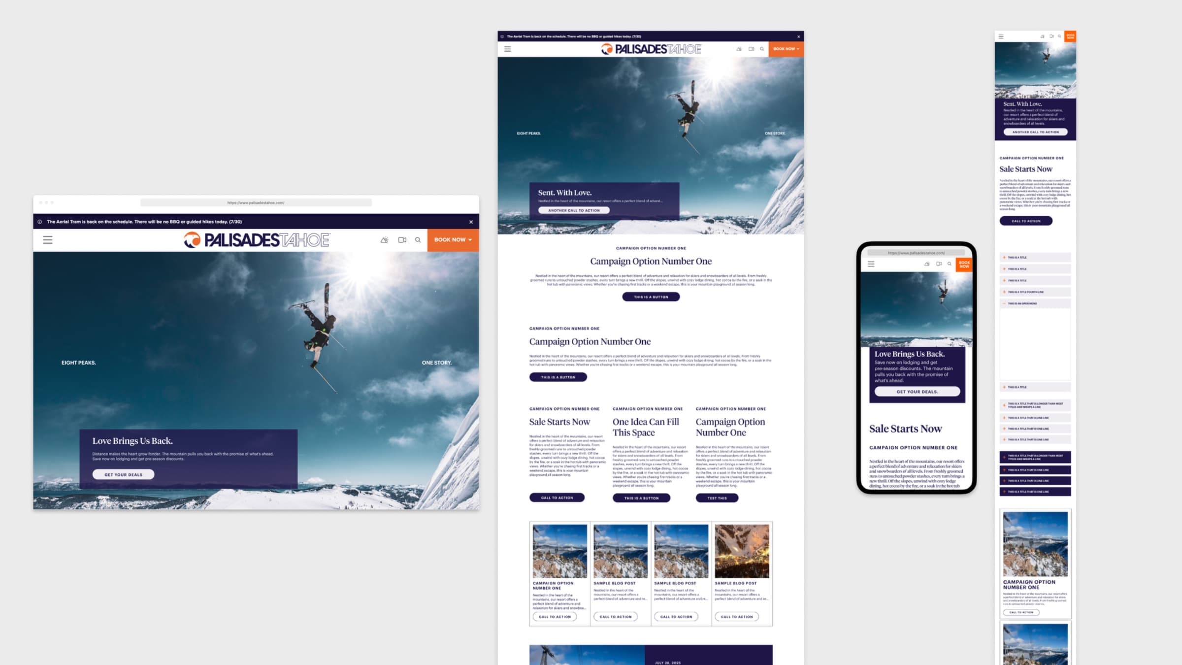 Three consecutive seasons of full-scope campaign production for Palisades Tahoe — one of the most respected ski destinations in North America. Work covered everything: brand design and assets for internal and consumer-facing use, campaign narrative and strategy, seasonal visual identity updates, merchandise, social, content planning, and photo and video treatments.